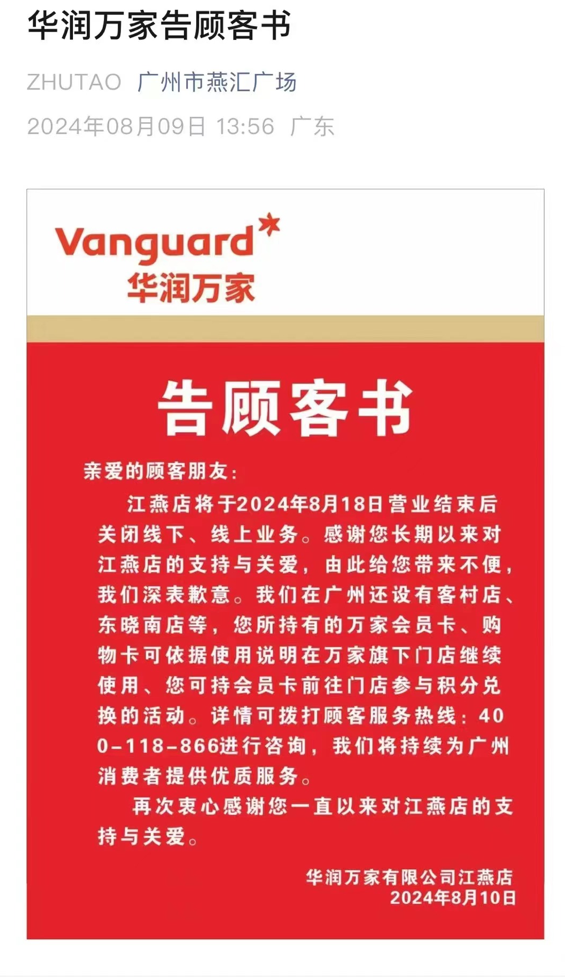 网友2:华润万家很早就转战居民区中型商超、网上超市,关闭几个大场也很正常。