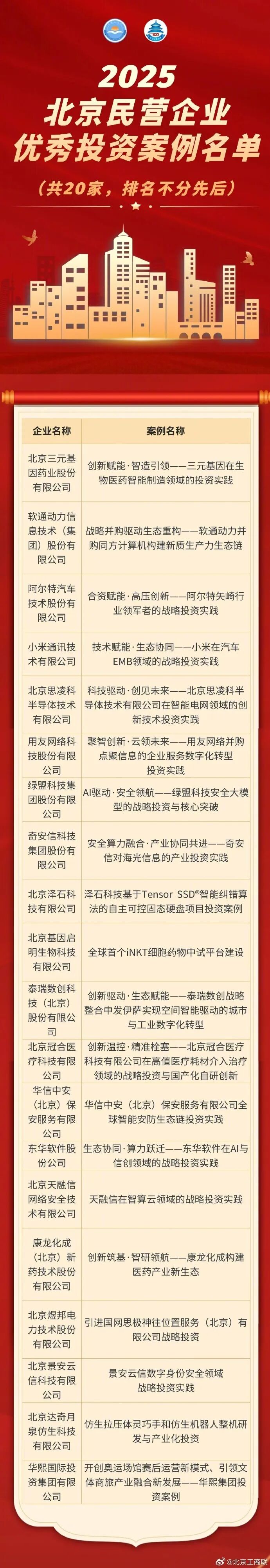 附:2025北京民营企业优秀投资案例名单(共20家,排名不分先后)